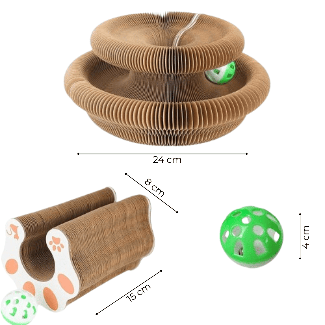 Die PfotenArena besteht aus einem flexiblen Ring mit Ball im Inneren. Sobald deine Katze den Ball anstupst oder in den Ring springt, verändert dieser seine Form – das Spiel bleibt unvorhersehbar und aufregend. So wird deine Samtpfote immer wieder neu zum Stupsen und Jagen motiviert.