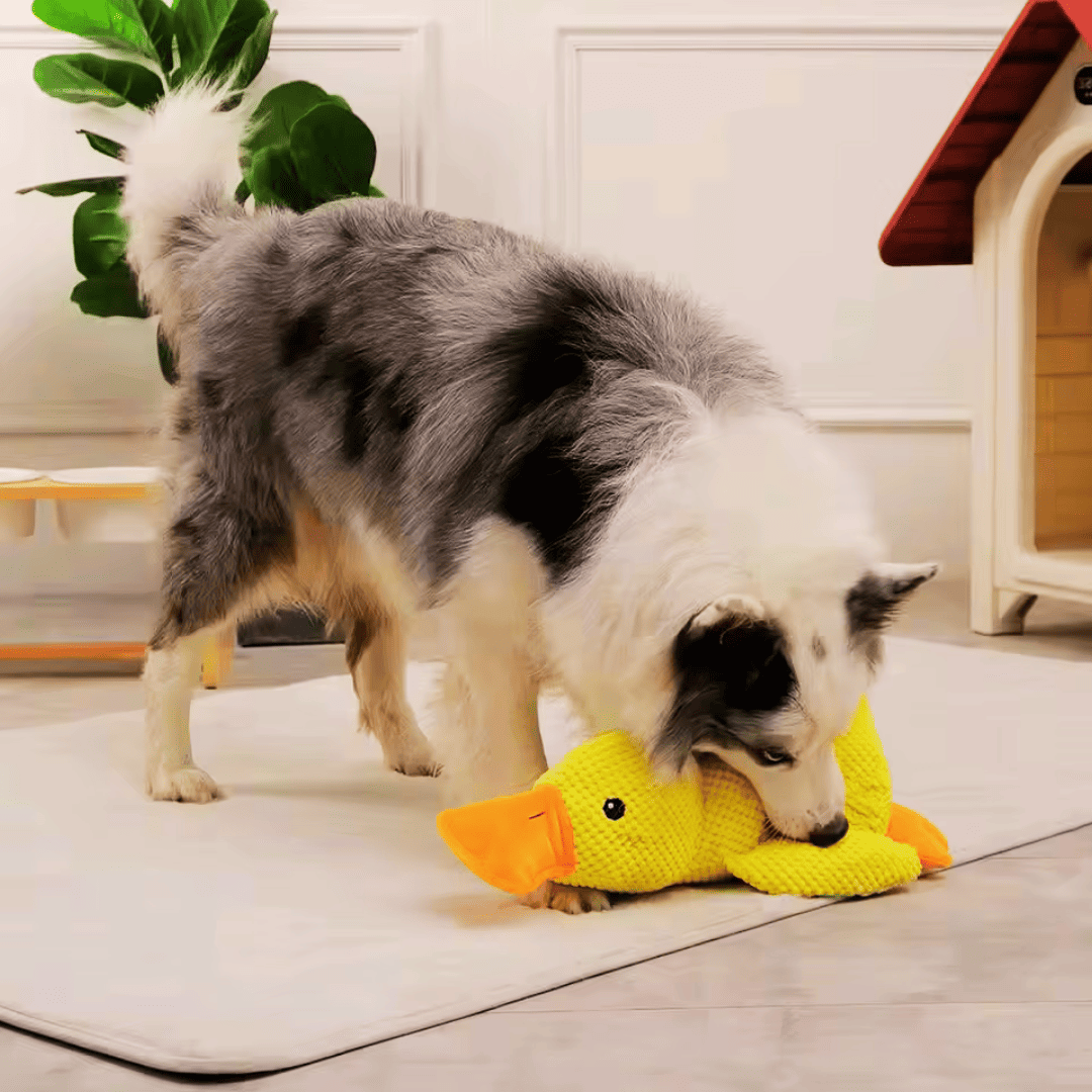 Genau hier hilft die WohlfühlEnte. Sie ist mehr als nur ein Spielzeug – sie schenkt Geborgenheit, beruhigt und beschäftigt deinen Hund auf natürliche Weise.